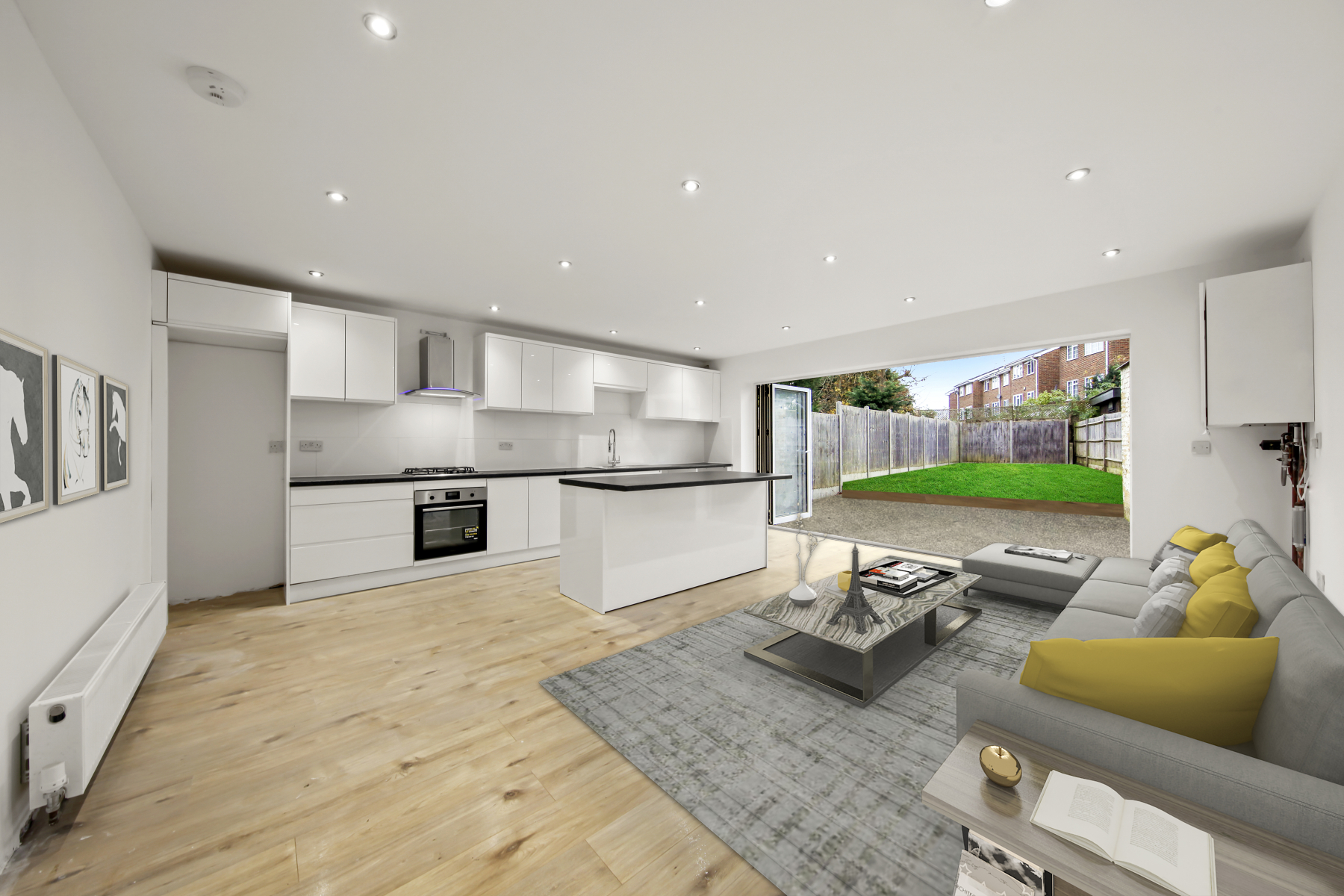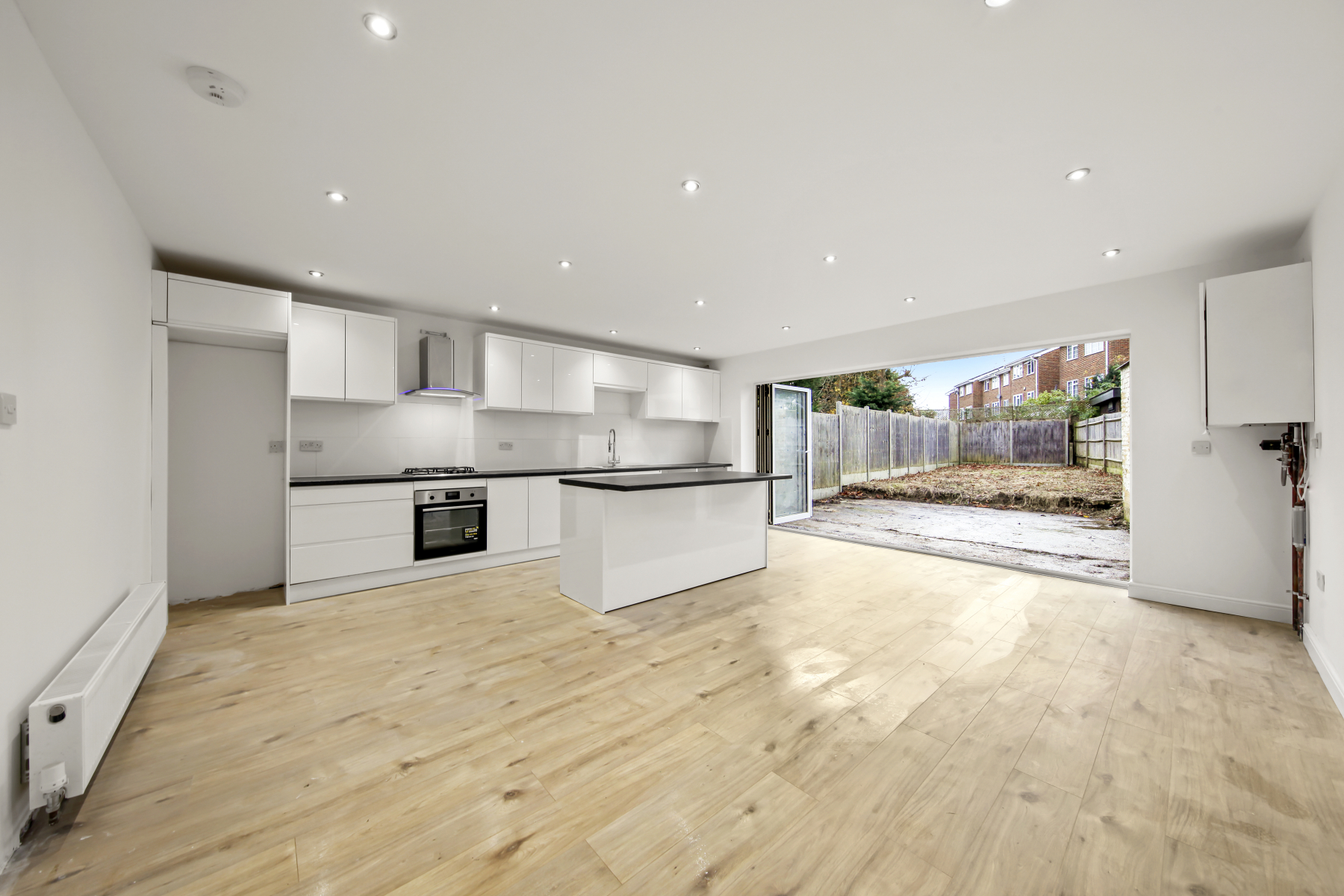 Spreading across almost 1500 square feet, this three-bedroom, three-bathroom family home has been extended and renovated to a high standard. Set over three floors, the ground floor consists of a large living room; a full bathroom with a walk-in shower; and a beautiful, large modern kitchen with bi-folding doors that lead out to the garden.